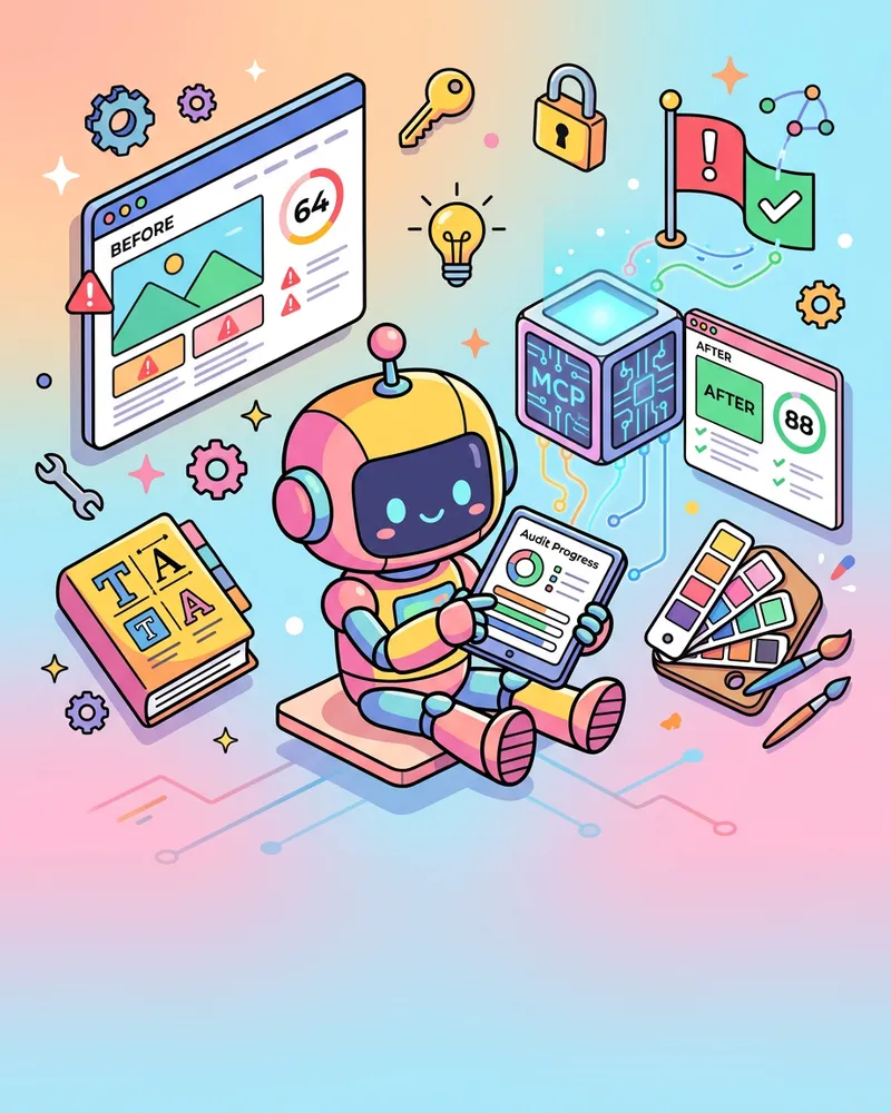 段階的に改善する姿勢が大切: 初回64点から73点、73点から88点、そして検査基準の変更で84点。完璧を一度に目指すのではなく、診断と修正のサイクルを回し続ける。SEO監査の段階的自動化で学んだパターンが、サイト品質改善にもそのまま当てはまりました。